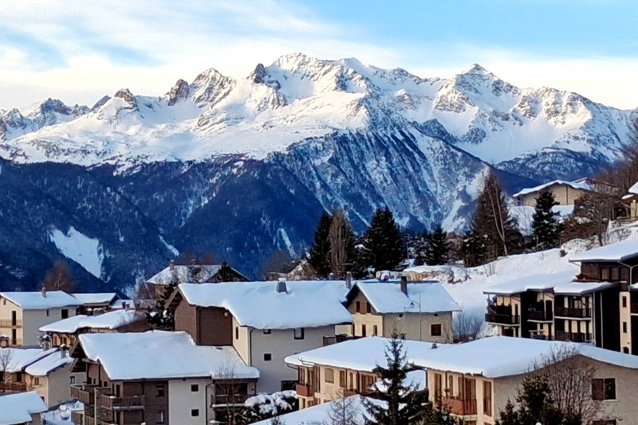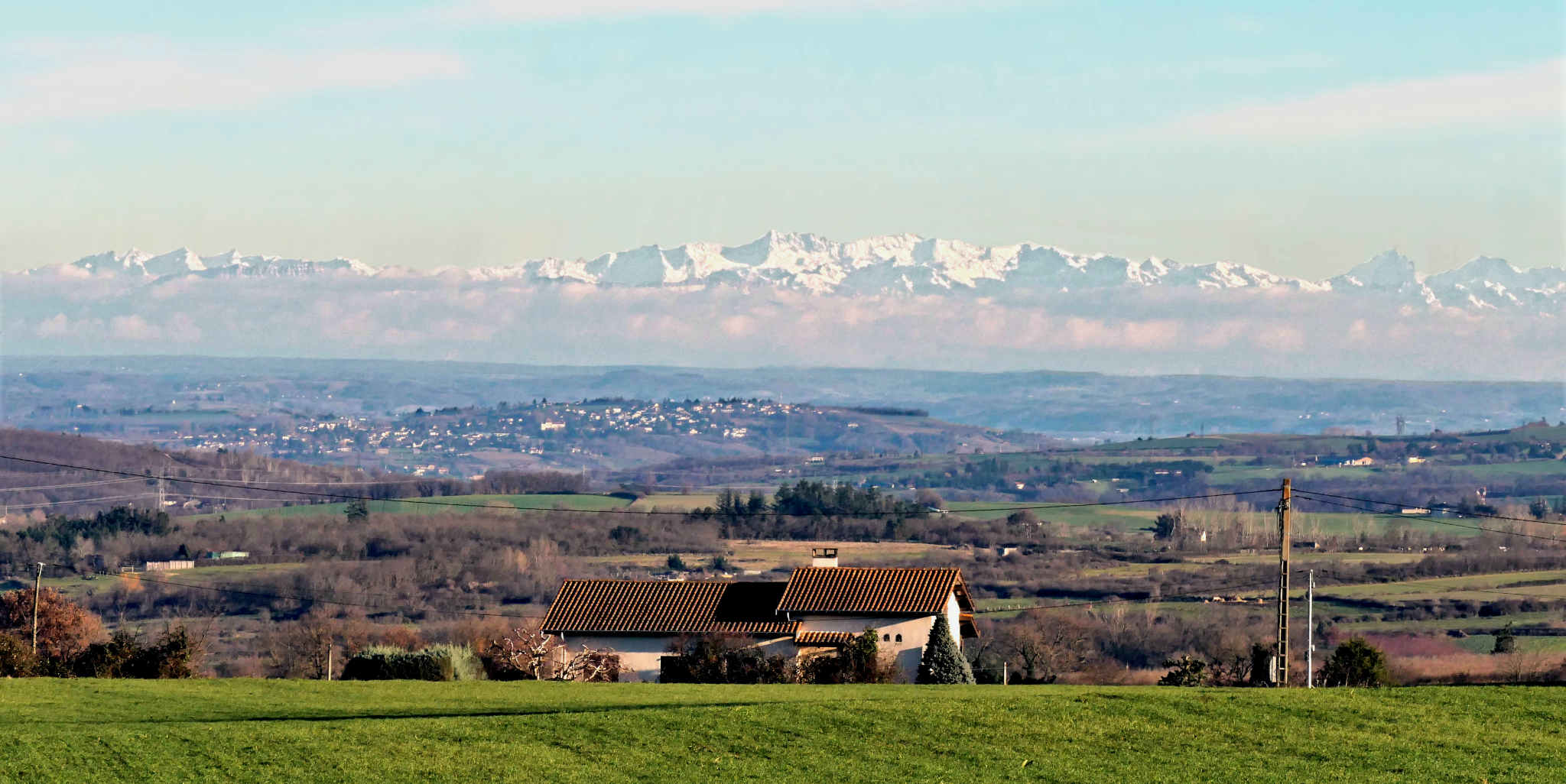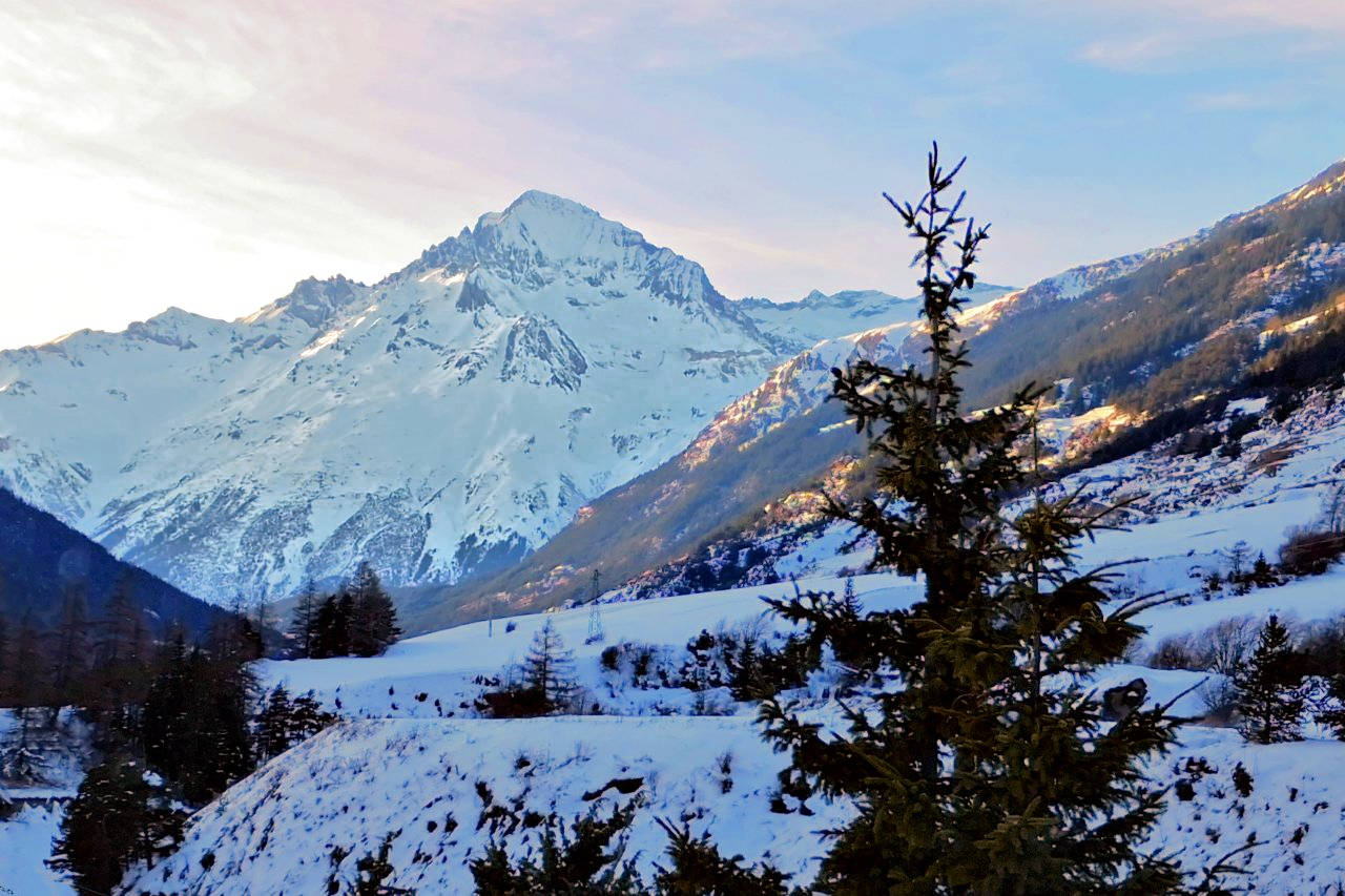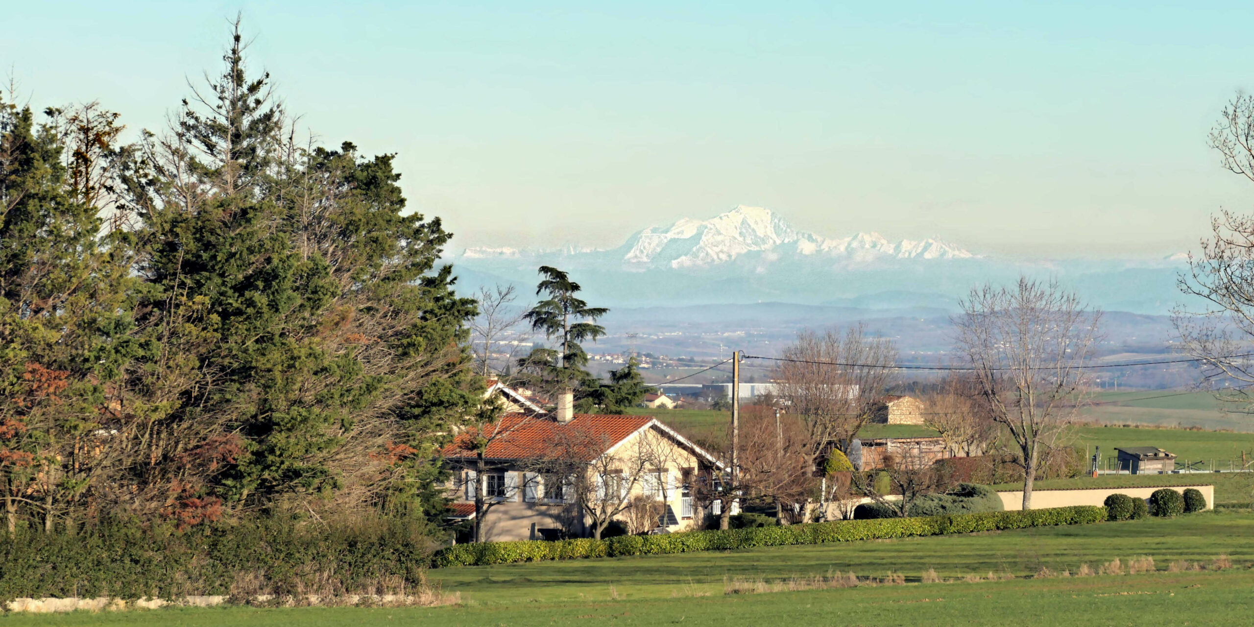 Vu de Mornant en janvier, le Mont-Blanc domine le hameau de Cœur.