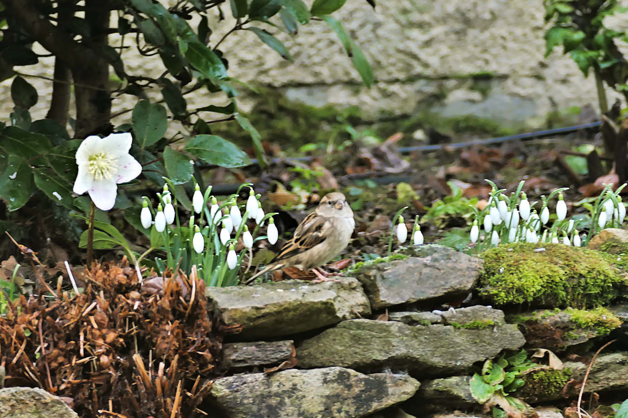 Dans le patio à Mornant les roses de Noël et perce-neige fleurissent.